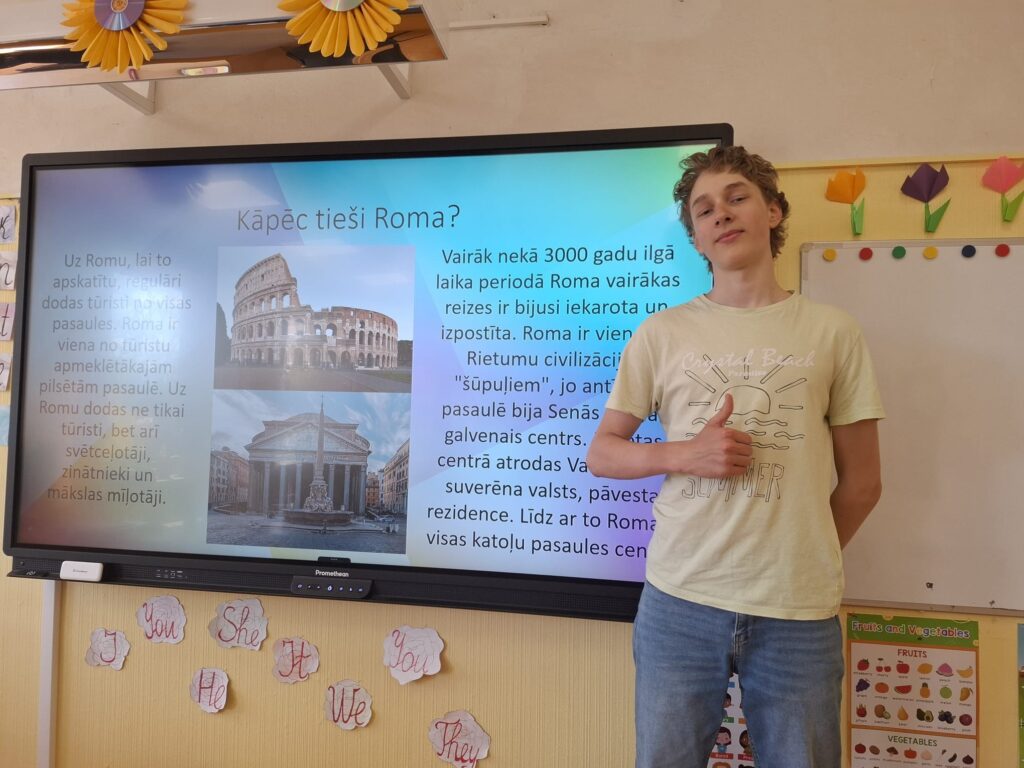 Svešvalodu jomas mēneša ietvaros šo zināšanu apguve pārtapa radošā un izzinošā darbā – skolēni prezentēja savus projektu darbus “Itālijas pilsētu vizītkarte” ![]()